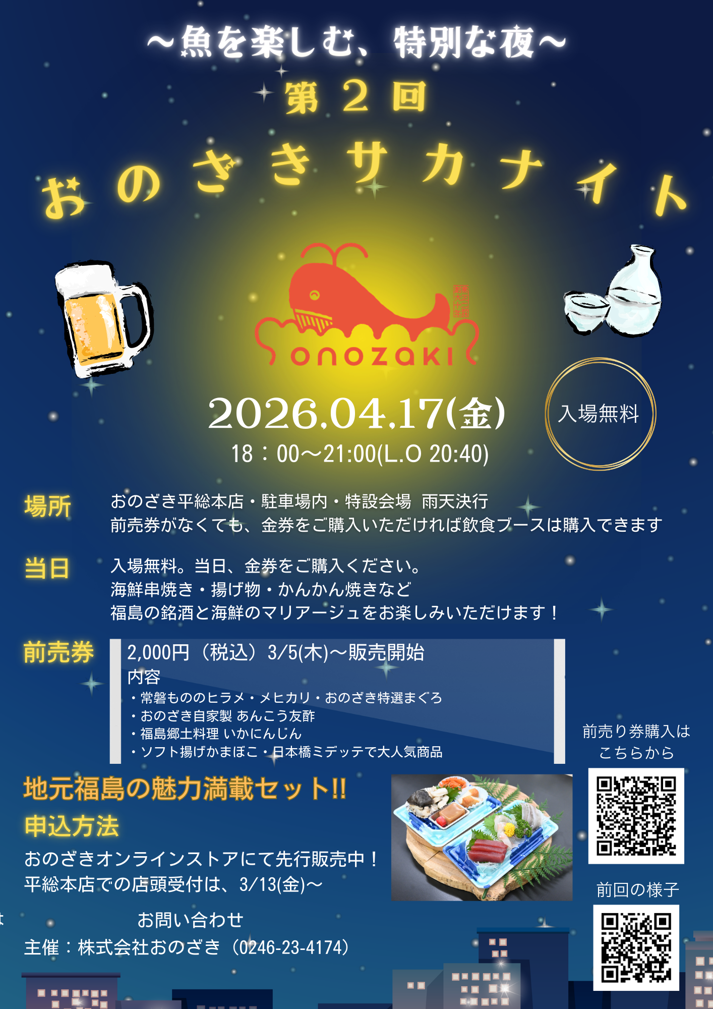 創業100年を超える鮮魚店おのざきが贈る「魚と地酒と音楽で酔いしれる」リアルイベントです。
